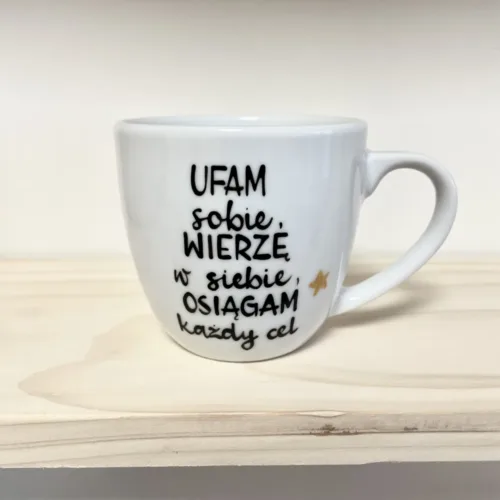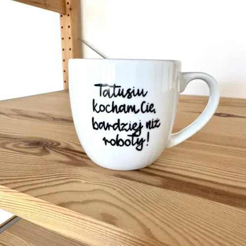 Kubek 300 ml z napisem to klasyczny rozmiar w personalizowanej odsłonie. Idealny na prezent i jako codzienny towarzysz chwil z kawą lub herbatą.