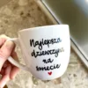 Kubek 300 ml z napisem to klasyczny rozmiar w personalizowanej odsłonie. Idealny na prezent i jako codzienny towarzysz chwil z kawą lub herbatą.